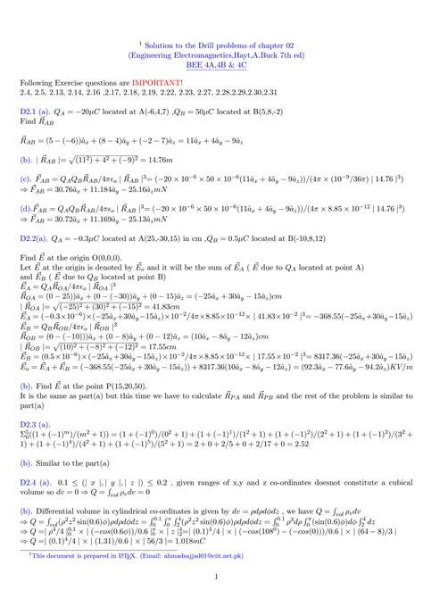 Engineering Electromagnetics Hayt 7th Edition Drill Problems Solutionspdf
